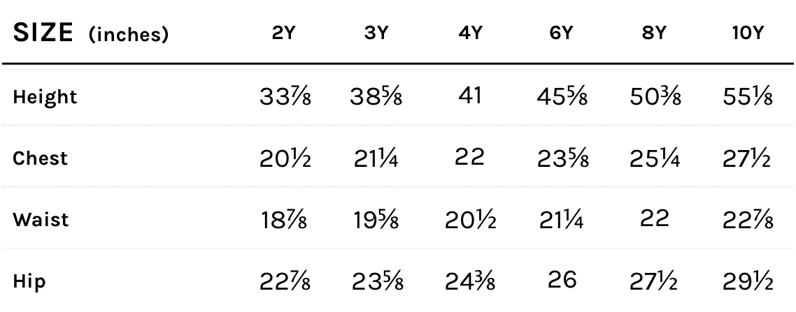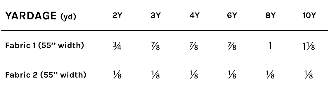 Sizes: 2Y, 3Y, 4Y, 6Y, 8Y and 10Y (Seam allowances are included)